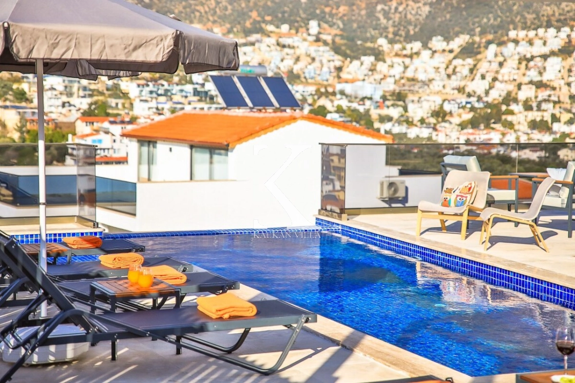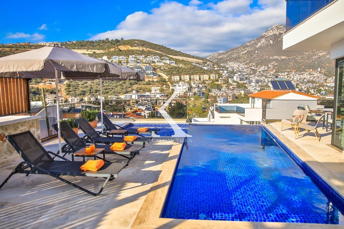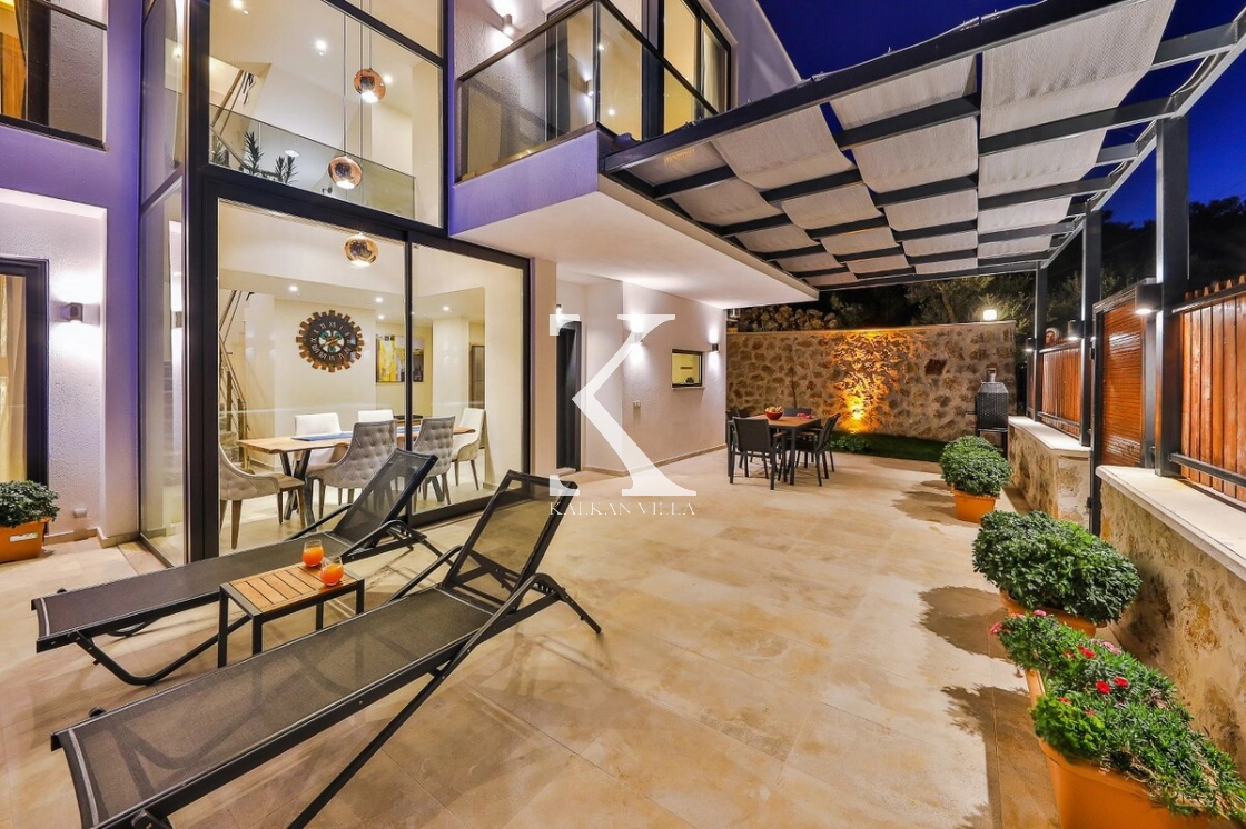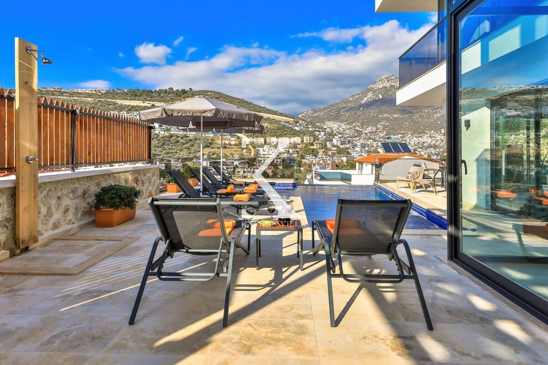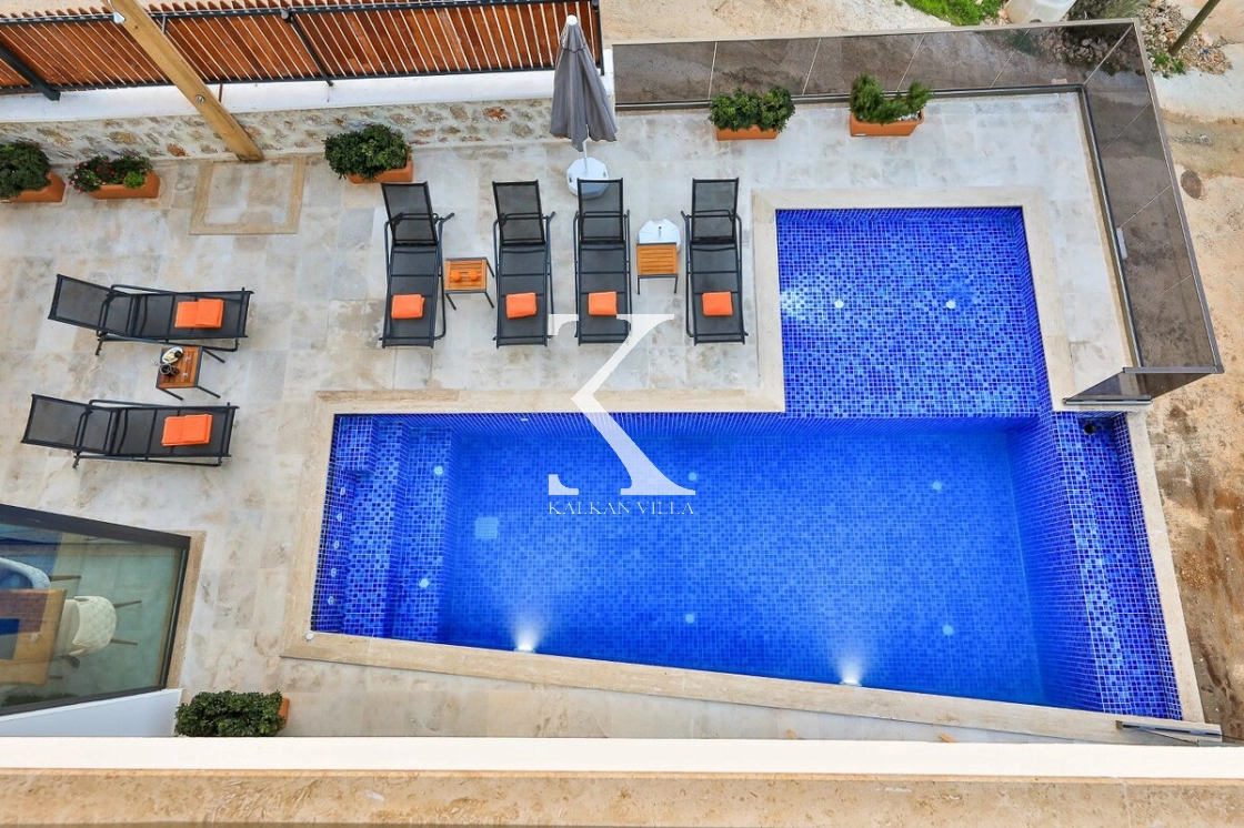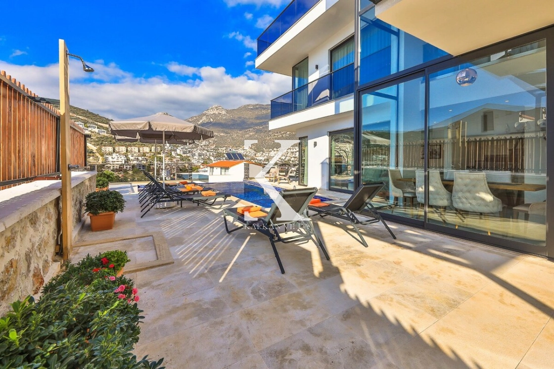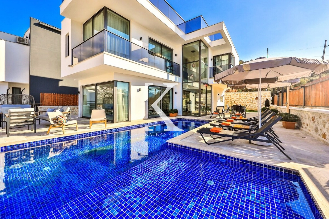 The villa features a modern architectural design, stylish interiors and spacious living areas, creating a relaxing and enjoyable holiday atmosphere. Villa Umut is located approximately 1.5 km from Kalkan town center and 1 km from the sea, providing easy access to beaches, restaurants and local attractions.