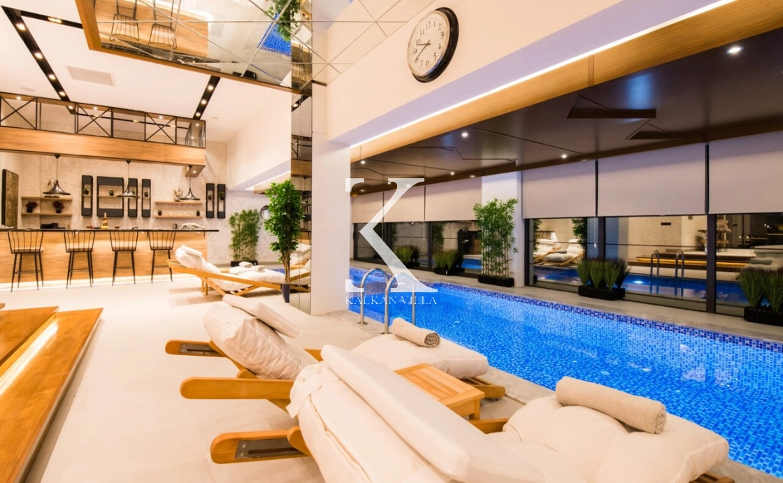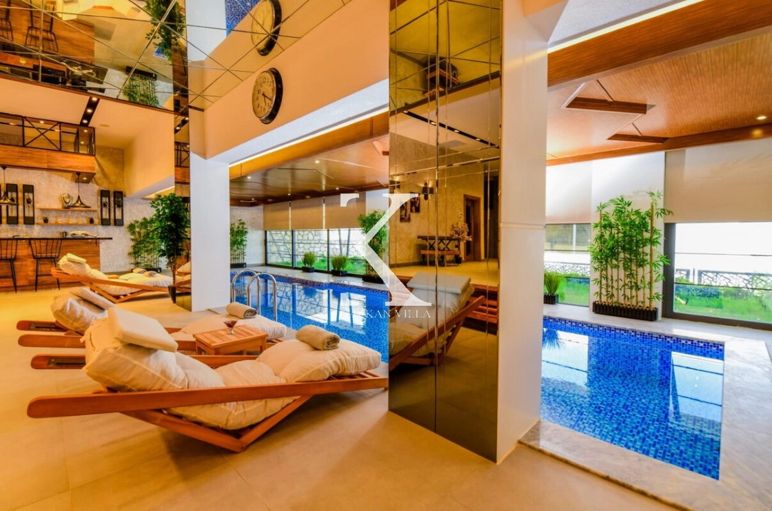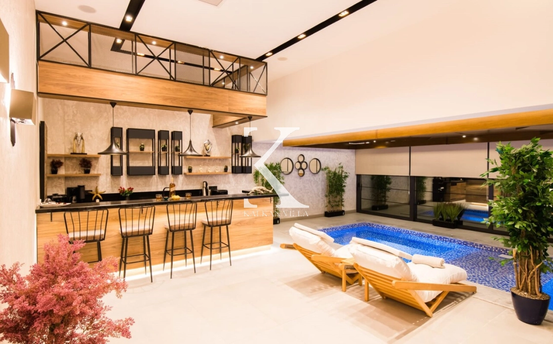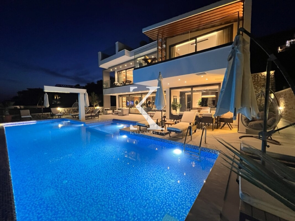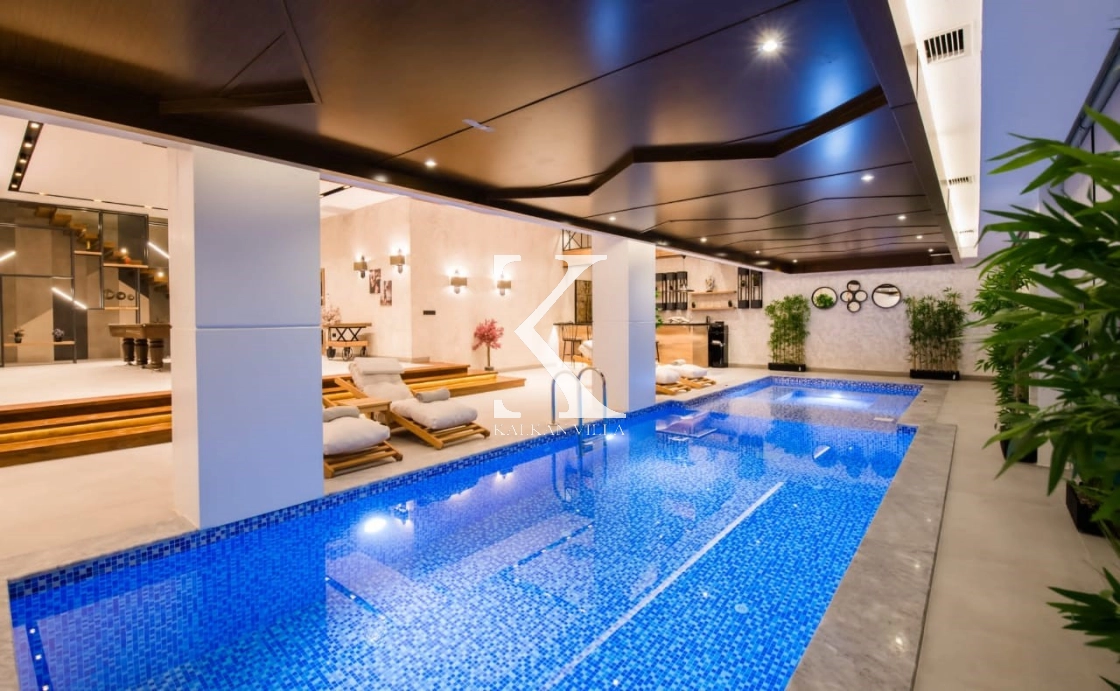 Villa Victoria Kalkan is an ultra-luxury holiday villa located in the center of Kalkan, featuring 4 bedrooms and accommodation for up to 8 guests. With its modern architecture and stylish interior design, the villa offers premium facilities such as a sauna, Turkish bath, cinema room, fitness area, and two separate swimming pools (hot & cold).