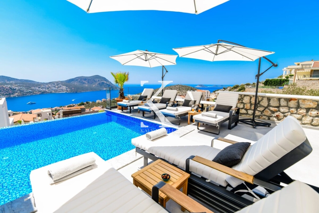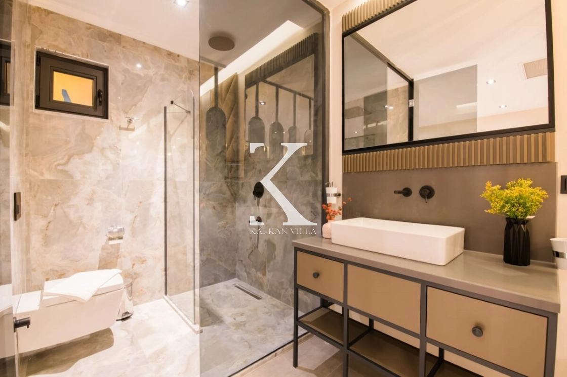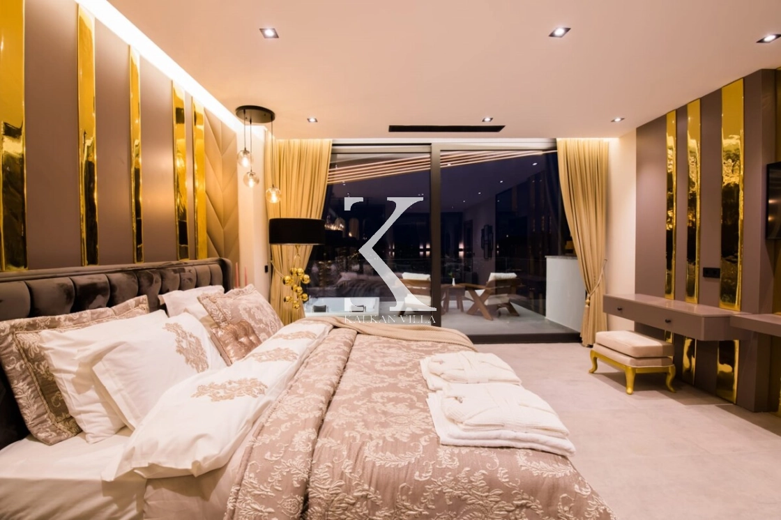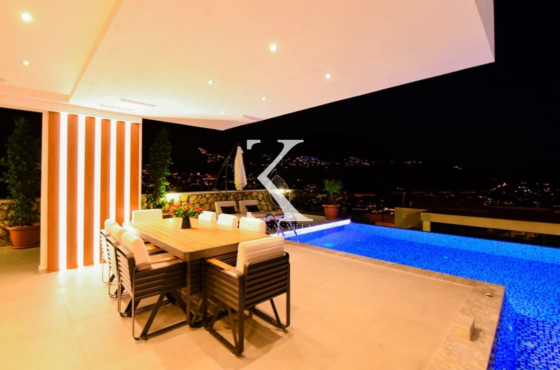 Villa Victoria Kalkan is an ultra-luxury holiday villa located in the center of Kalkan, featuring 4 bedrooms and accommodation for up to 8 guests. With its modern architecture and stylish interior design, the villa offers premium facilities such as a sauna, Turkish bath, cinema room, fitness area, and two separate swimming pools (hot & cold).