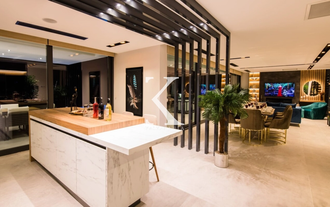 The ultra-modern American-style kitchen is fully equipped with high-end and technological appliances, including: