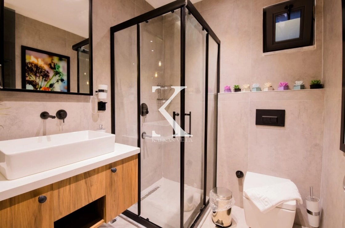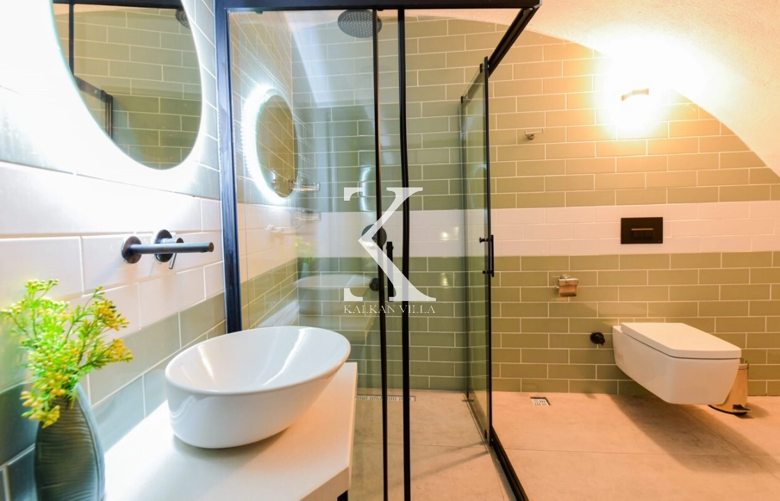 Thanks to its spacious interior, automatic garage, security camera system, and first-class furniture, the villa provides a high level of comfort and safety. Although centrally located, Villa Victoria Kalkan enjoys a peaceful atmosphere surrounded by nature. It is an excellent choice for large families and groups of friends seeking luxury and privacy.
