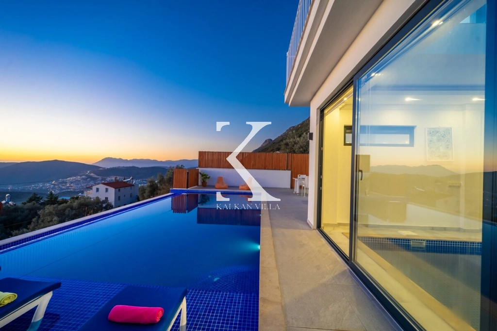 Villa Glorya is a luxurious honeymoon villa with an indoor pool and unique sea and nature views in Kalkan Kördere Region. This special villa with 2 bedrooms and a capacity of 4 people offers the opportunity to watch the magnificent view of Kalkan from a bird’s eye view throughout the day.
