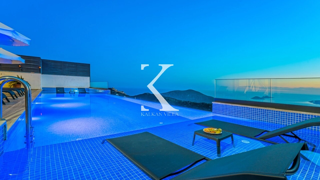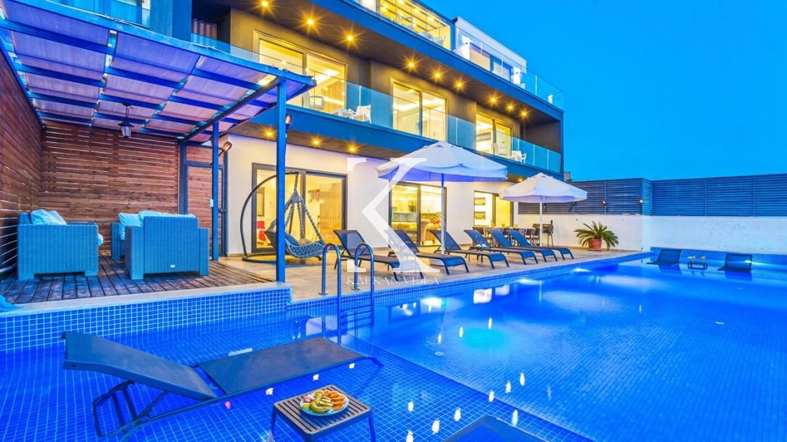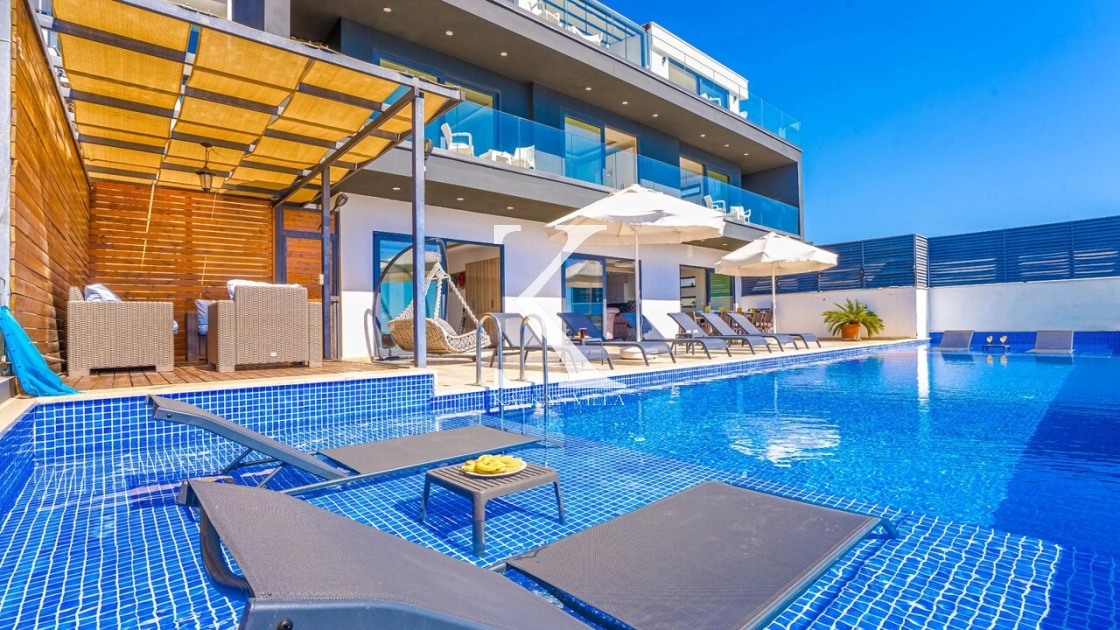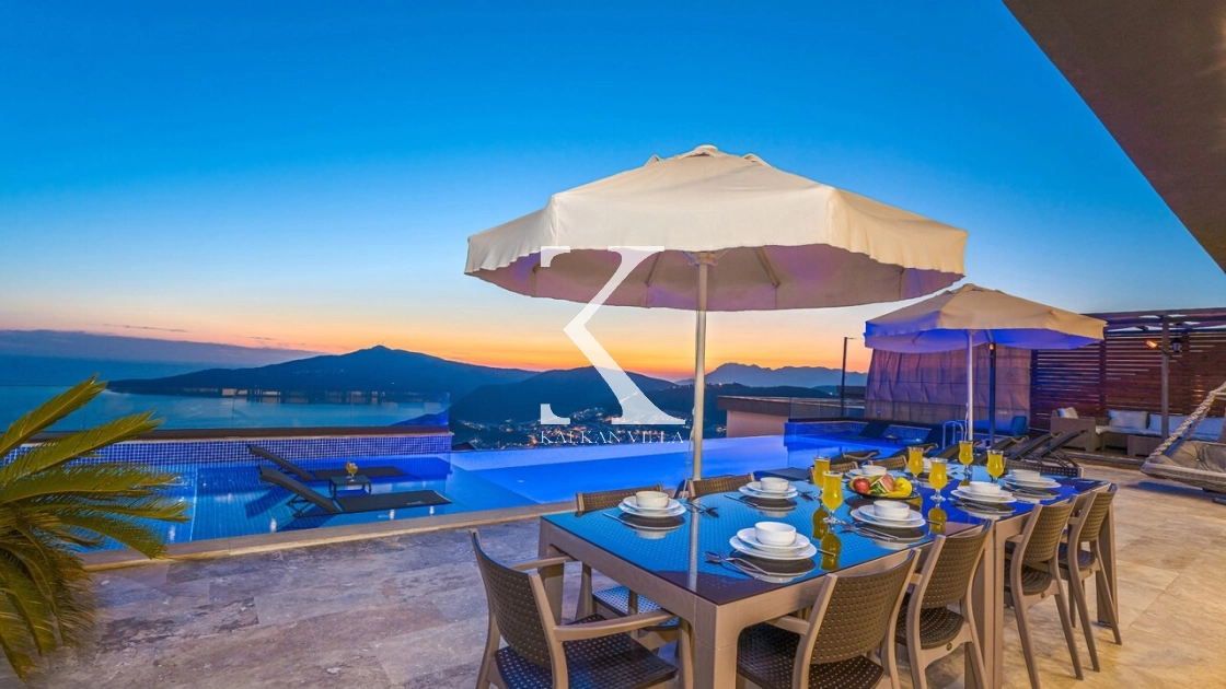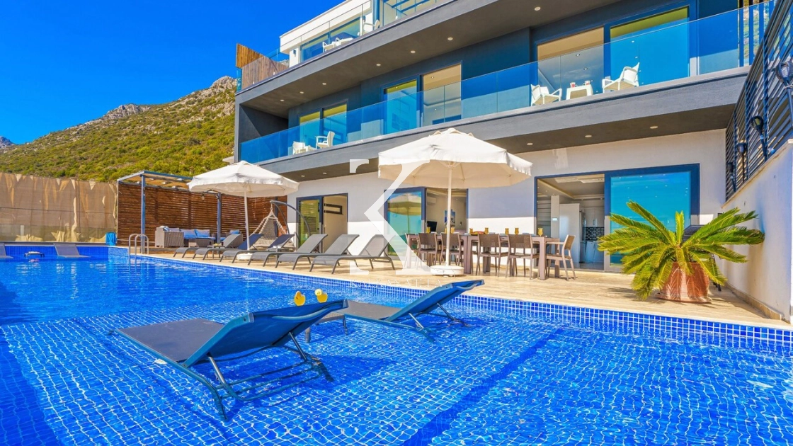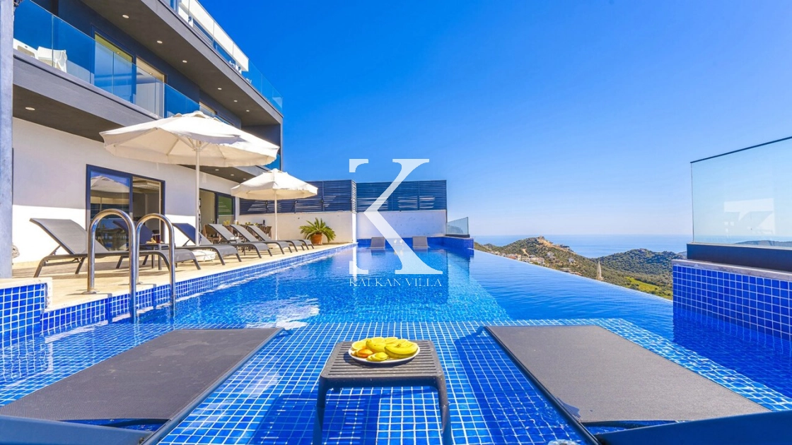 Villa Mega is a luxurious holiday villa located in the Kördere area of Kalkan, offering a spectacular panoramic sea view and an unforgettable accommodation experience for up to 10 guests.