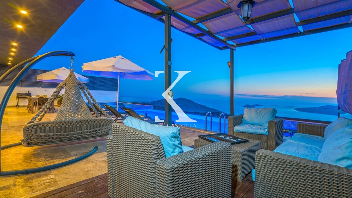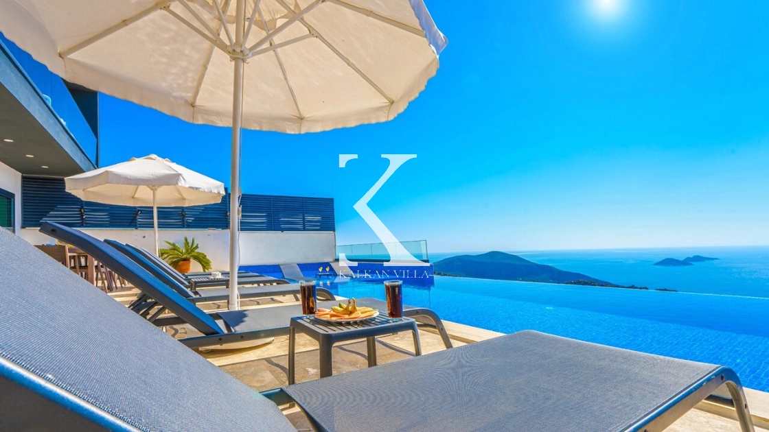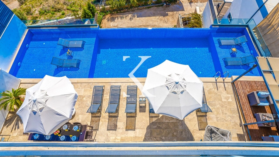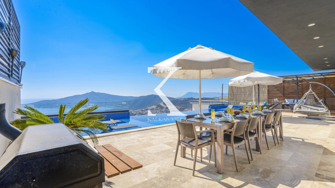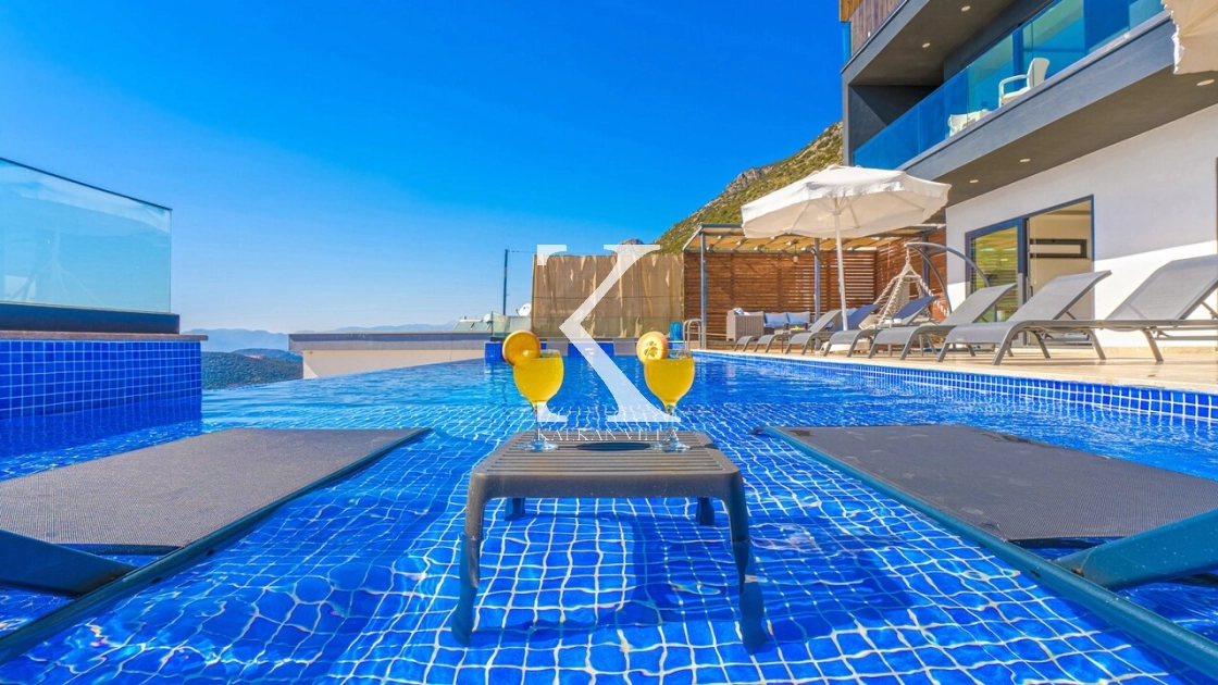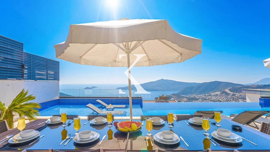 Villa Mega is a luxurious holiday villa located in the Kördere area of Kalkan, offering a spectacular panoramic sea view and an unforgettable accommodation experience for up to 10 guests.