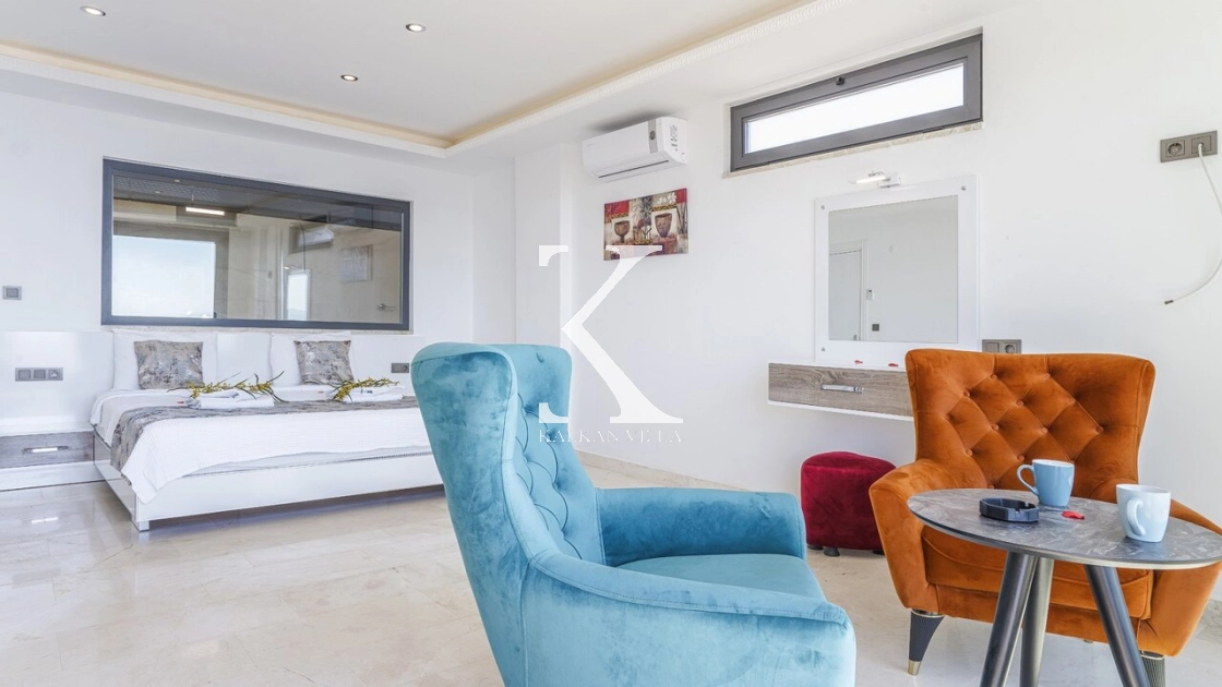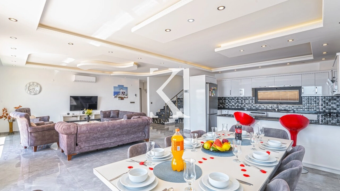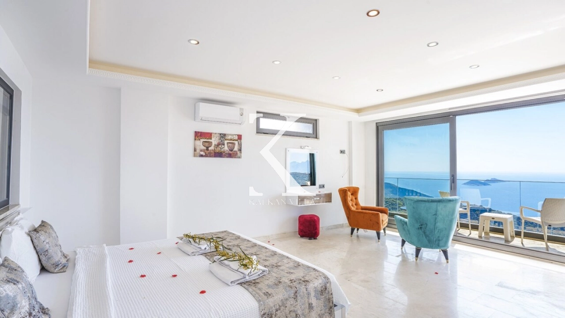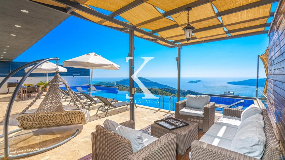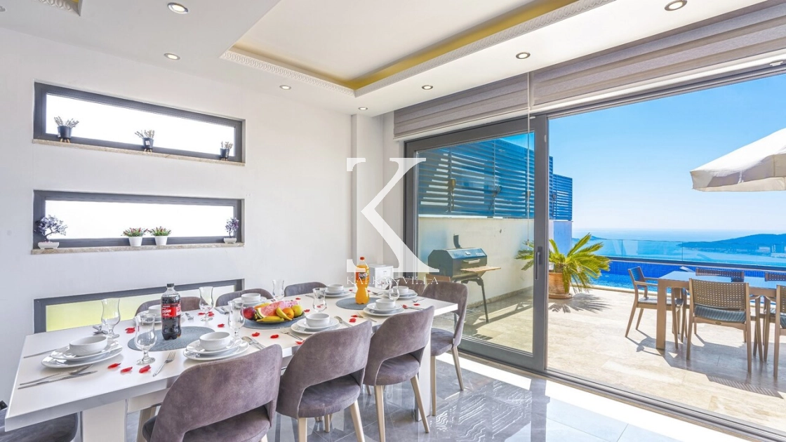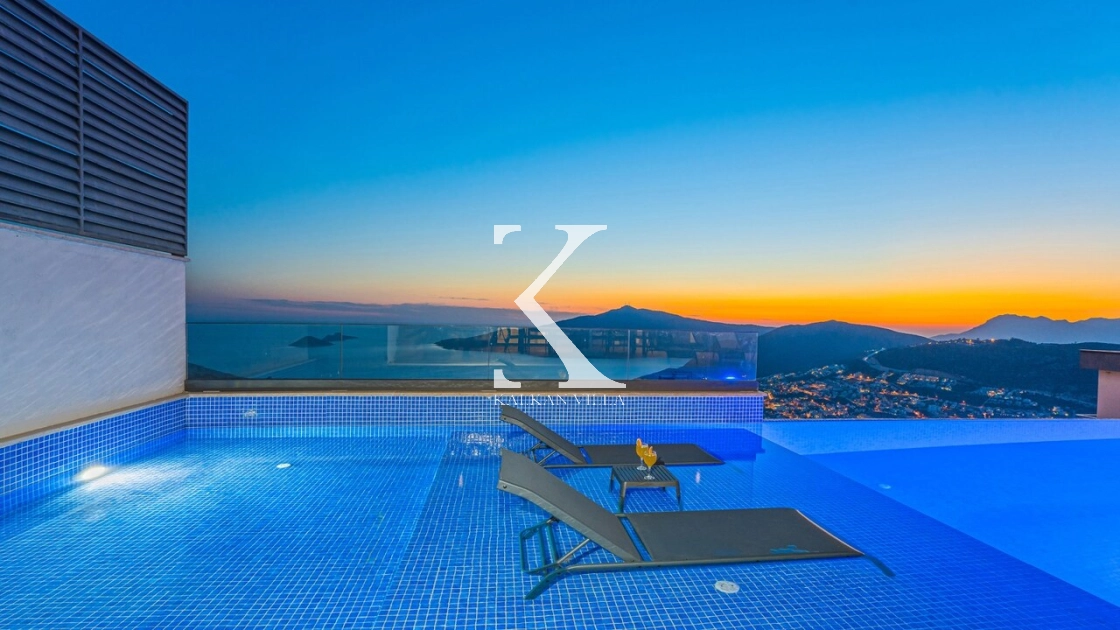 Villa Mega is a luxurious holiday villa located in the Kördere area of Kalkan, offering a spectacular panoramic sea view and an unforgettable accommodation experience for up to 10 guests.