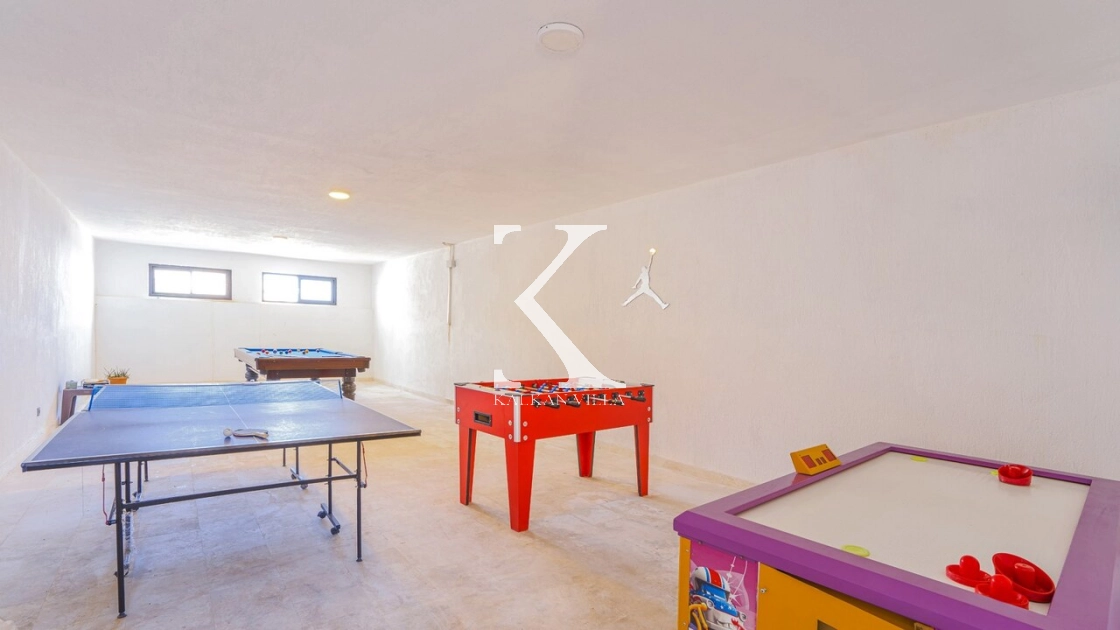 Inside, you’ll find luxury amenities including a jacuzzi, sauna, and a game room equipped with billiards, table tennis, foosball, and air hockey, ensuring endless fun throughout your stay.