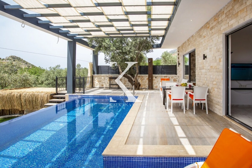 Villa Panama Kördere is a special honeymoon villa with 1 bedroom and accommodation capacity for 2 people, located in the Kördere region of Kalkan, surrounded by nature. With its modern and stylish design, it offers a peaceful, romantic and unforgettable holiday experience especially for honeymoon couples and small families.